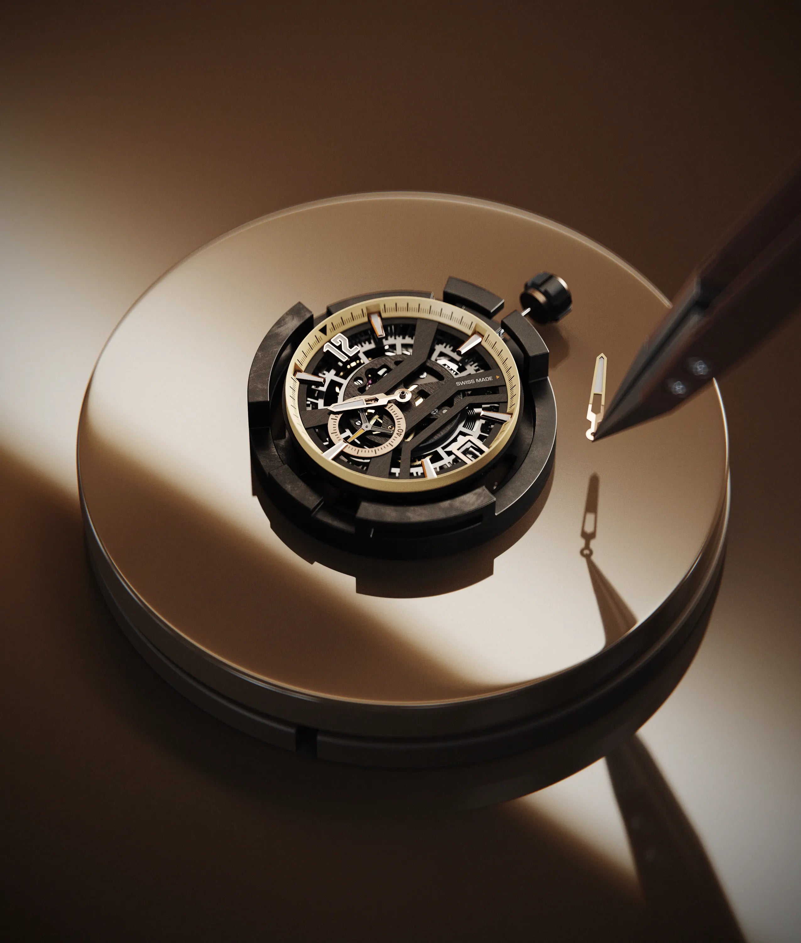 Every detail has been thoughtfully engineered to optimize performance and showcase craftsmanship, with an open-worked architecture that reveals the intricate interplay of gears, wheels, and bridges in motion. This caliber is a rarity in modern swiss watchmaking, featuring seconds, minutes, hours, and date complications, ensuring seamless functionality and absolute precision in any environment.