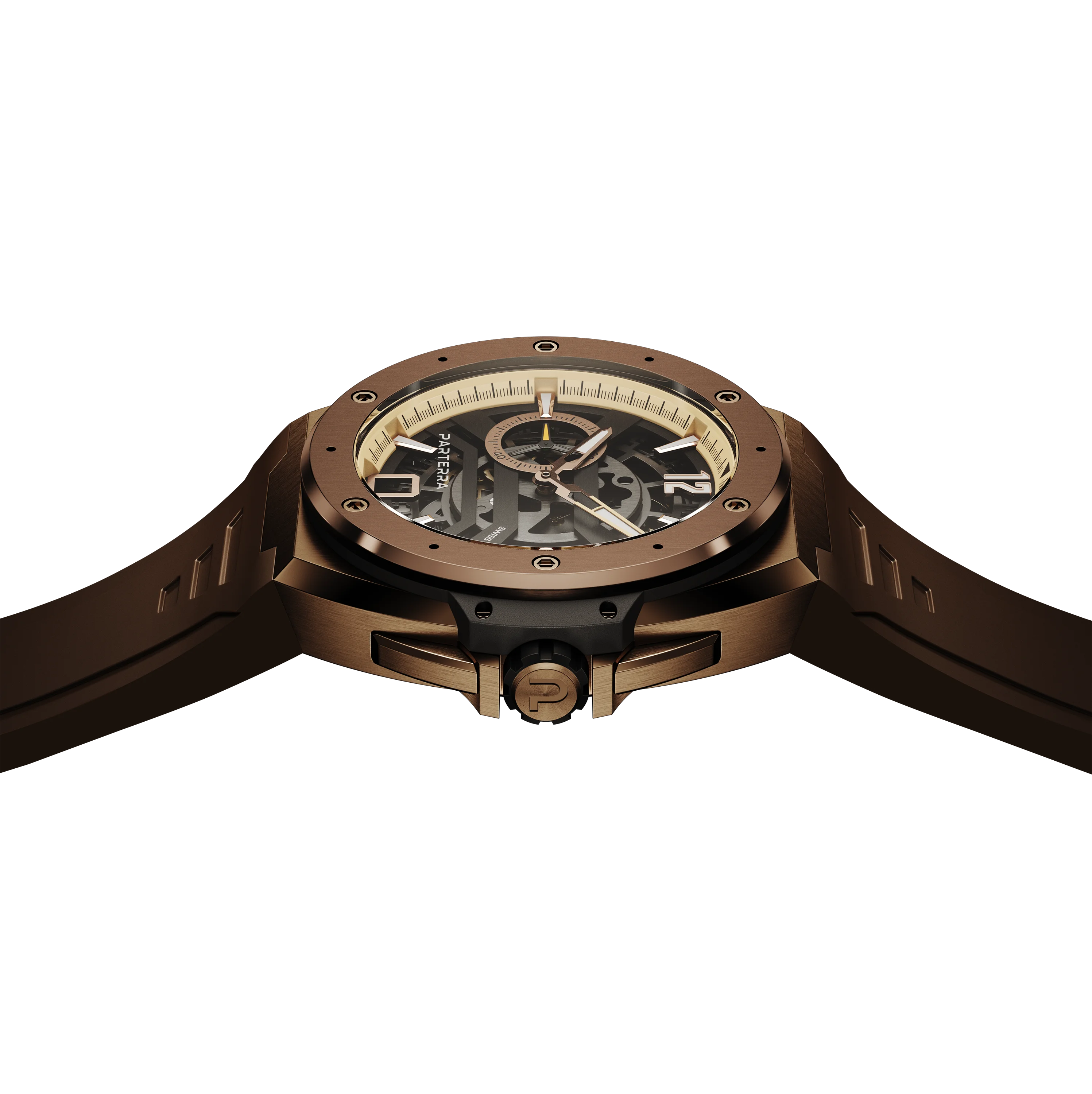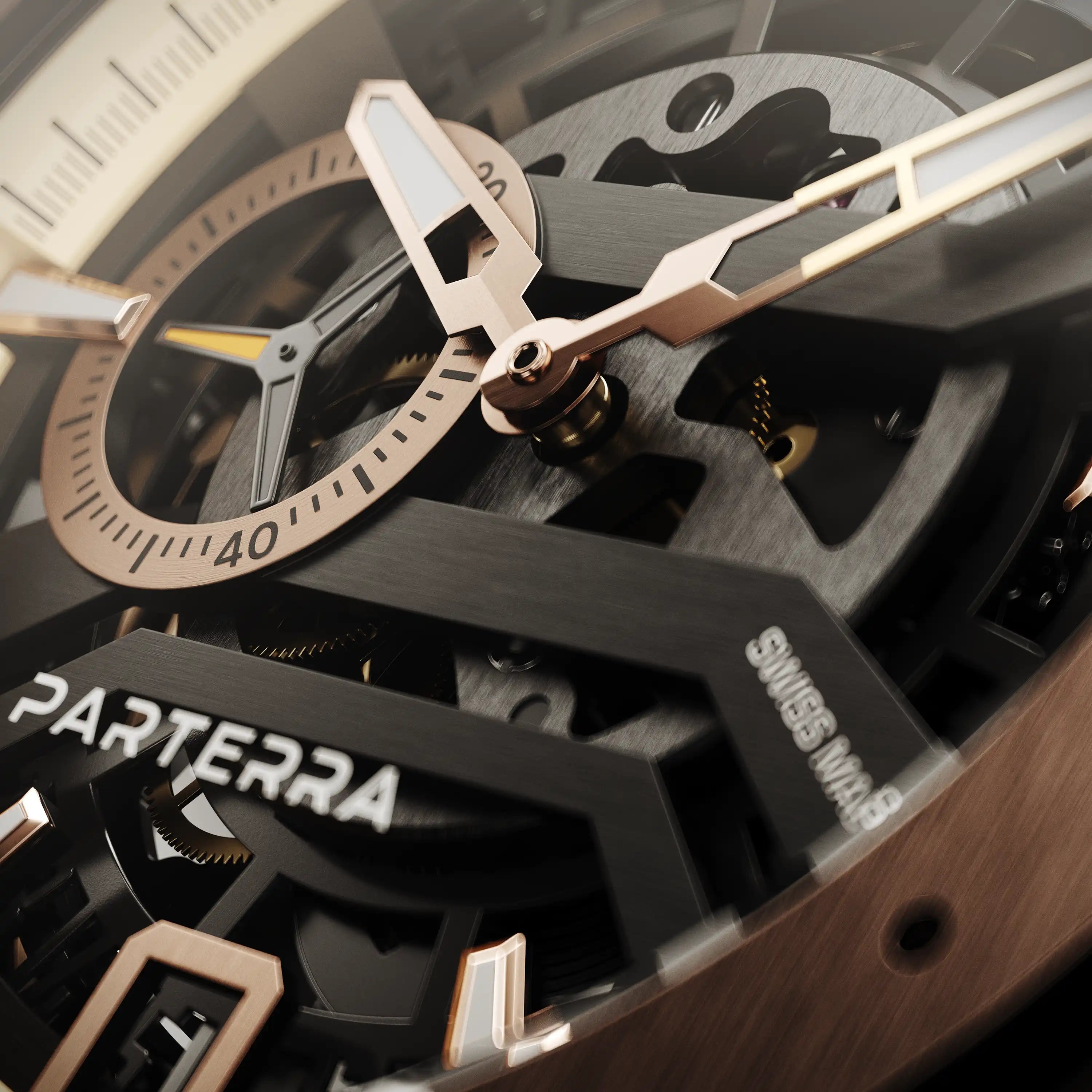 Powered by the P-01 skeleton caliber, an exclusive Swiss-made movement crafted exclusively for Parterra’s All-Terrain Collection, the Hoggar Brown stands as a pinnacle of precision engineering and artisanal mastery.